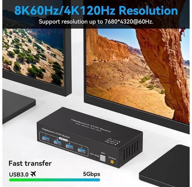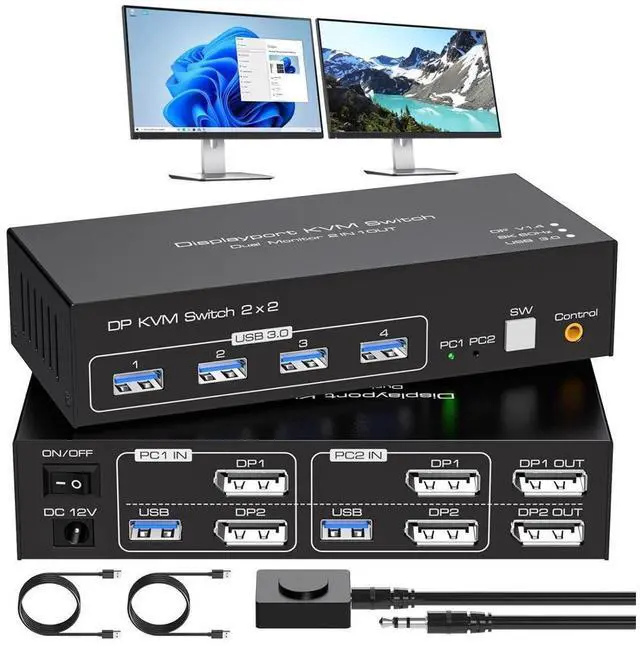 Dual Monitor Displayport KVM Switch 2 computers share 2 monitor and 4 USB 3.0 device