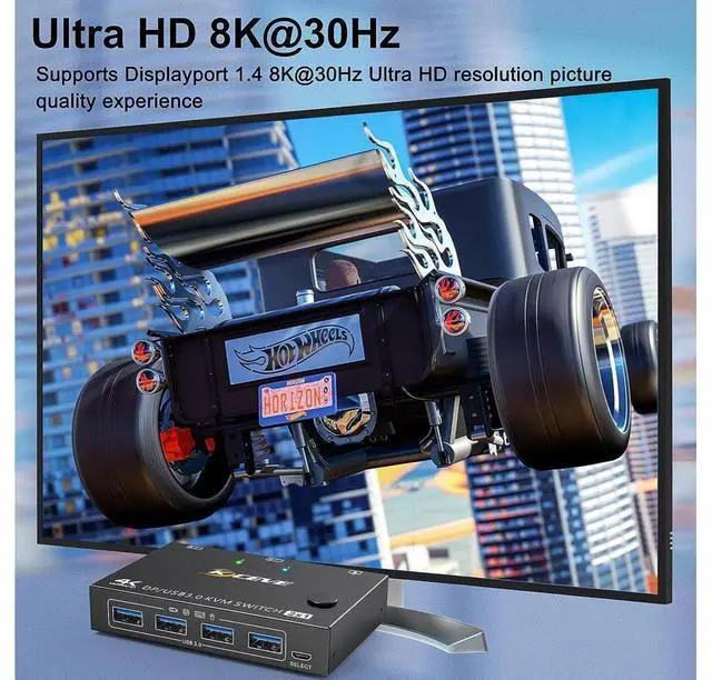 Displayport KVM Switch 2 PC 1 Monitor Share 4 USB 3.0 Devices