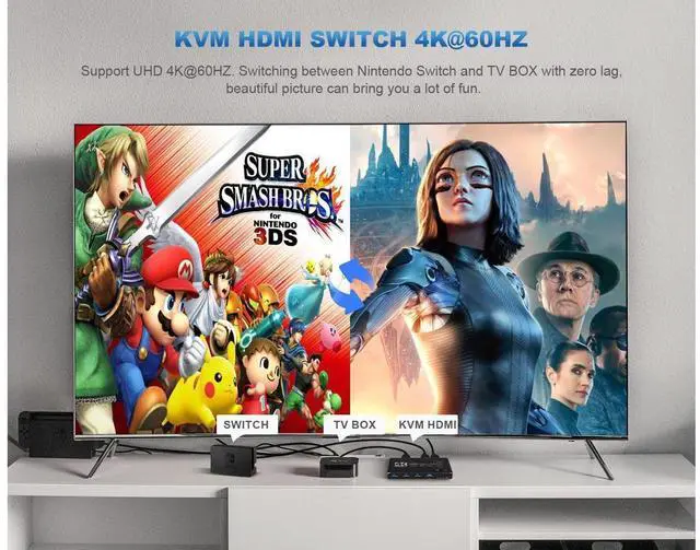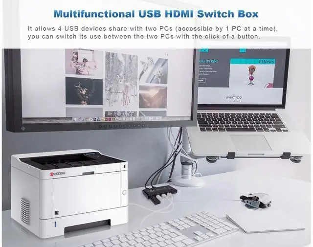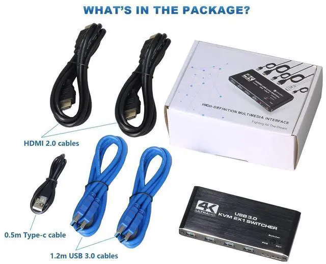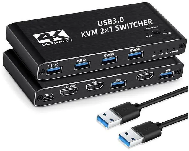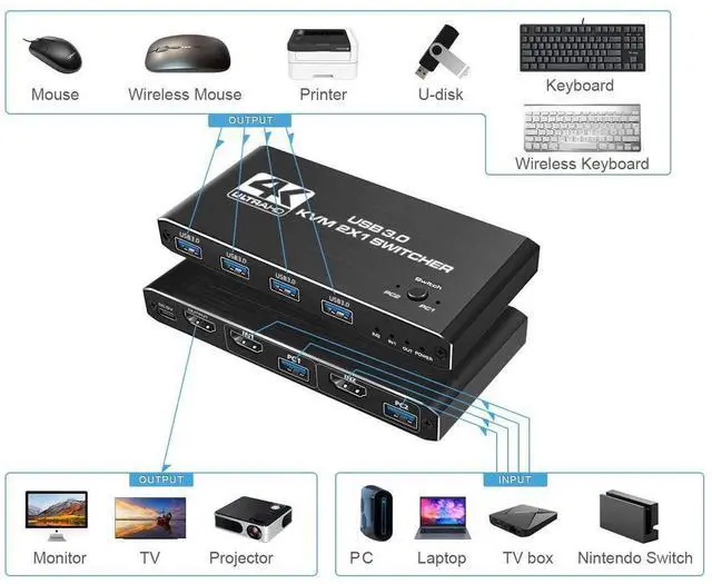 Multi-functional KVM SWTICHER, this is not only a KVM SWITCH, but also an 4K@60HZ HDMI SWITCH, or a USB 3.0 SWITCH.