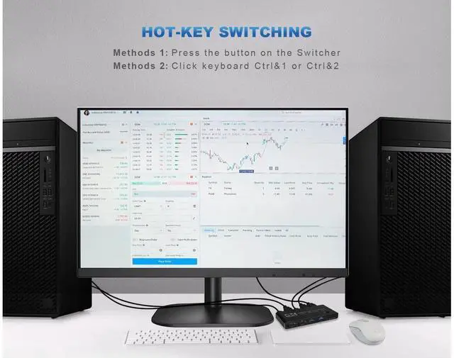 This KVM HDMI Switch allows 2 computers share 1 set Monitor Keyboard and Mouse, etc.