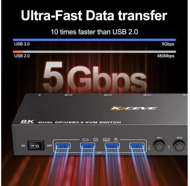 • [With 4 USB 3.0 USB Ports] This KVM switch with 4 USB 3.0 port for sharing mouse, keyboard, USB printers, scanners, etc,. USB 3.0 transmission is more stable and faster, if you are looking for a USB 3.0 version KVM switch this will be a good choice!