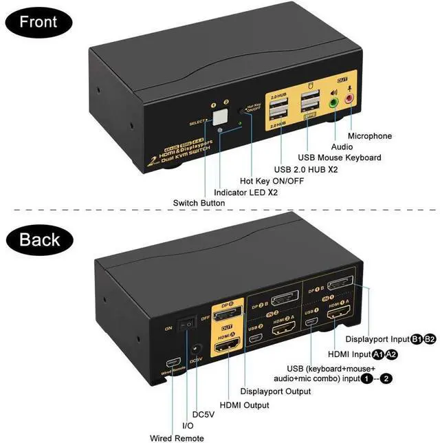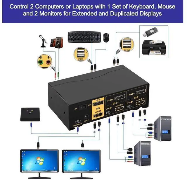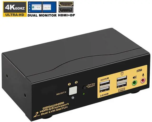 Color: Dual HDMI+DP KVM 2 Port 4K 60Hz CKL 2 Port Dual Monitor KVM Switch HDMI + DisplayPort Extended Display 4K 60Hz