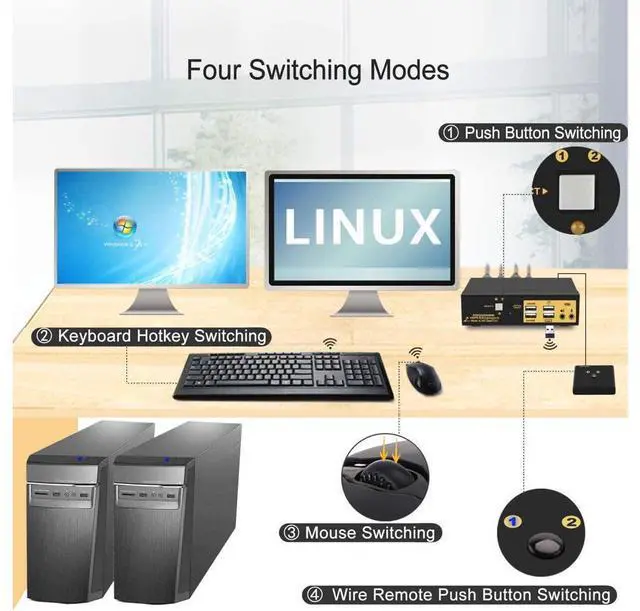 USB DEVICE COMPATIBLITY: Cross Support Windows 10/7/2000/XP, Linux, Mac and more; With USB pass-through technology to compete with more wired or wireless keyboard and mouse, and 2 extra USB 20 HUB to share more USB devices between computers