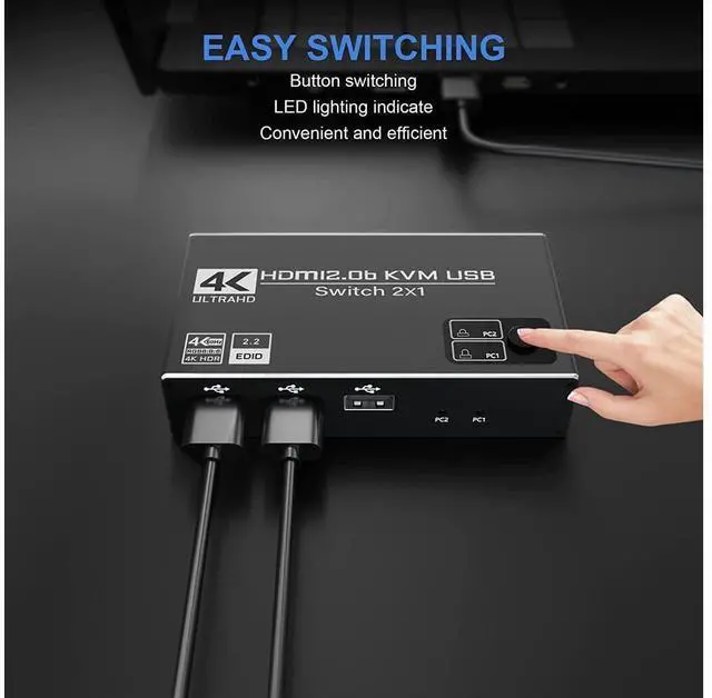 [Key Switch] Key switch, only 2-4 seconds to switch, convenient and fast. Please note:This KVM is switched through HDMI signal channel. If you only connect the USB-B cable without connecting the HDMI cable, the KVM cannot toggle the button.
