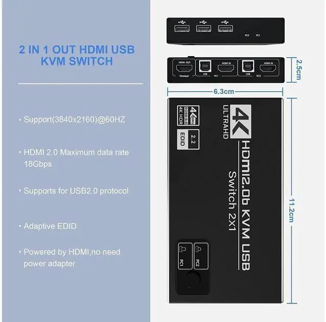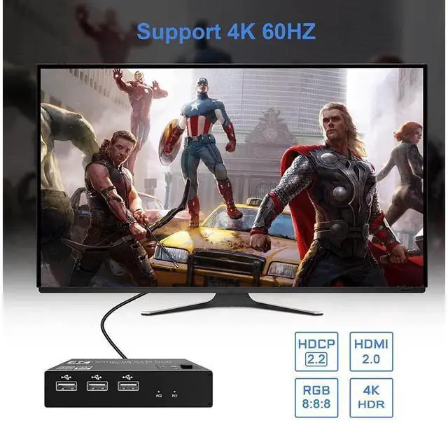[Ultra HD 4K@60Hz] The device is equipped with HDMI 2.0 A, The KVM Switch 2 port supports maximum 4K@60Hz. No delay in image transmission. The transmission image quality is very clear. The transmission image quality is very clear.