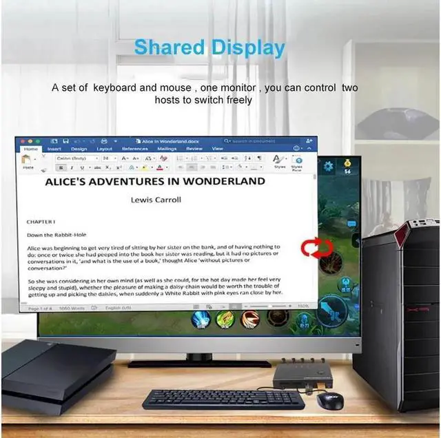 (1) 1 set of keyboard / mouse and one display can control two devices for efficient office work;