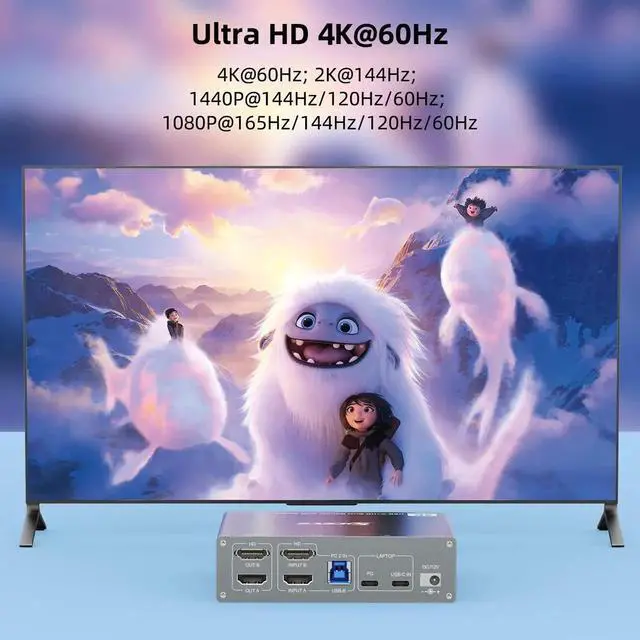 Additional Features- [Support 60W PD Fast Charging]Designed with PD charging port to give enough power for your laptop during using. This is a very stable 2 monitors USB C KVM switch. KVM switch laptop desktop supports the follow resolutions, 4k@60Hz, 2560x1440@/120hz/60hz, 1920x1440@144hz/120hz/60hz, etc. Real test support 60W charging, but some product page stress it support 100w is not the real data.