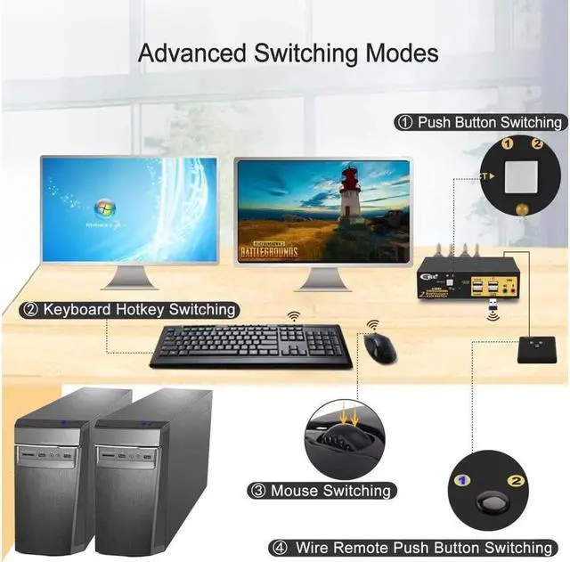CKL-622DP 2 Port KVM Switch Dual Monitor DisplayPort is designed to control 2 DP computers / laptops with one set of keyboard, mouse and 2 monitors for extended or mirrored display, supports