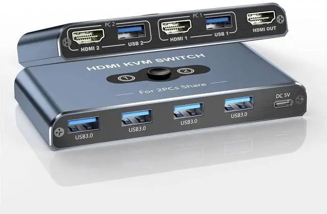- [No Worry to Buy]The KVM Switch 1 Monitors 2 Computers comes with 12 months after-sales service and 24 hour online technical support. If the HDMI KVM does not work properly for your computer, please feel free to contact us at any time. Package Content: 2* USB 3.0 Cable, 2*HDMI 2.0 Cable, 1* USB-C Power Cable, 1* User Manual.