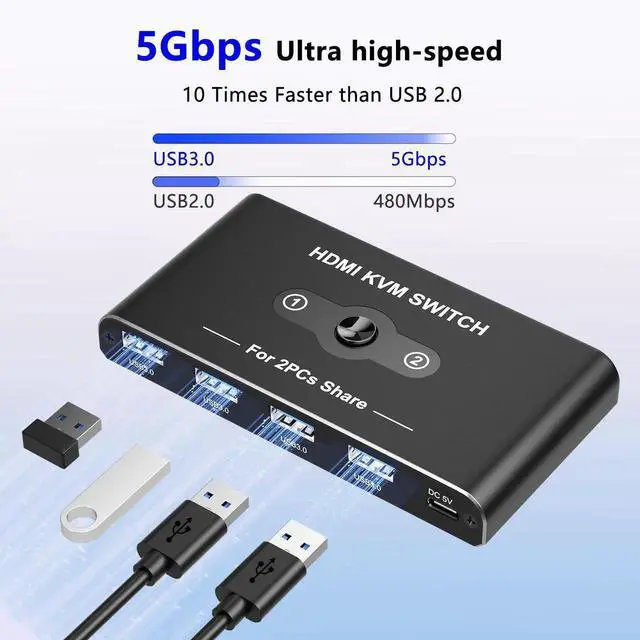 Additional Features- [High-Speed USB 3.0 Ports]Equipped with 4 USB 3.0 ports, our KVM switch supports ultra-fast data transfer rates up to 5Gbps, perfect for connecting peripherals like mice, keyboards, printers, webcams, and USB sticks. It is also backward compatible with USB 2.0, 1.1, and 1.0, ensuring versatile connectivity for all your devices.
