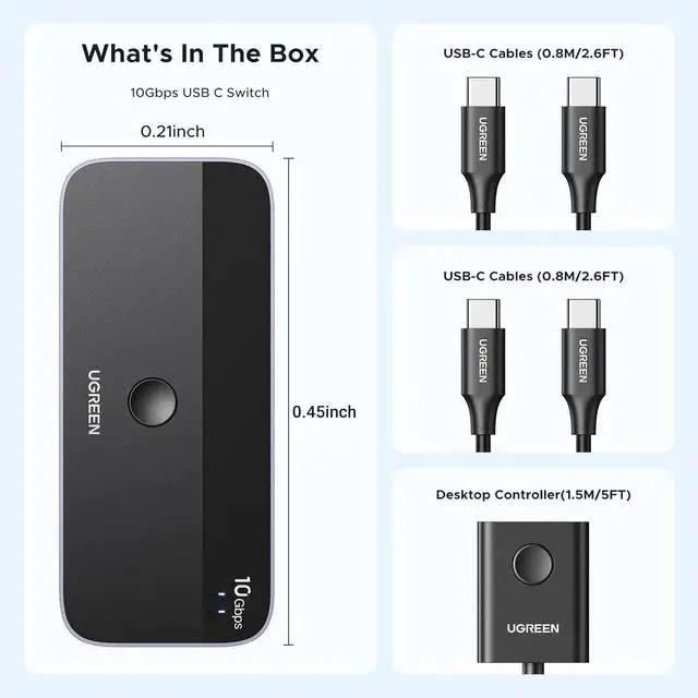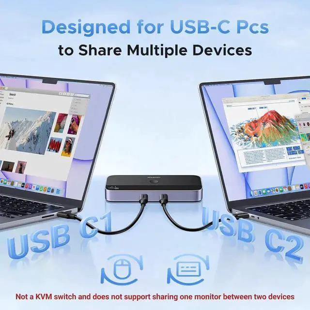2 USB-C PCs Share Multiple Devices: UGREEN 2-In 4-Out USB-C switch supports sharing 4 USB devices like a keyboard, mouse, and headphones between 2 computers. Switch freely between work computer and personal laptop to boost work efficiency. (Not a KVM switch and Not support a monitor)