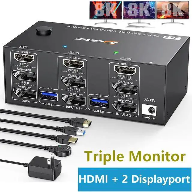 3 Monitors KVM Switch -- 2 Computers Share 3 Monitors and 4 USB 3.0 Devices