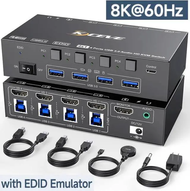 USB 3.0 KVM Switch HDMI 4 Ports