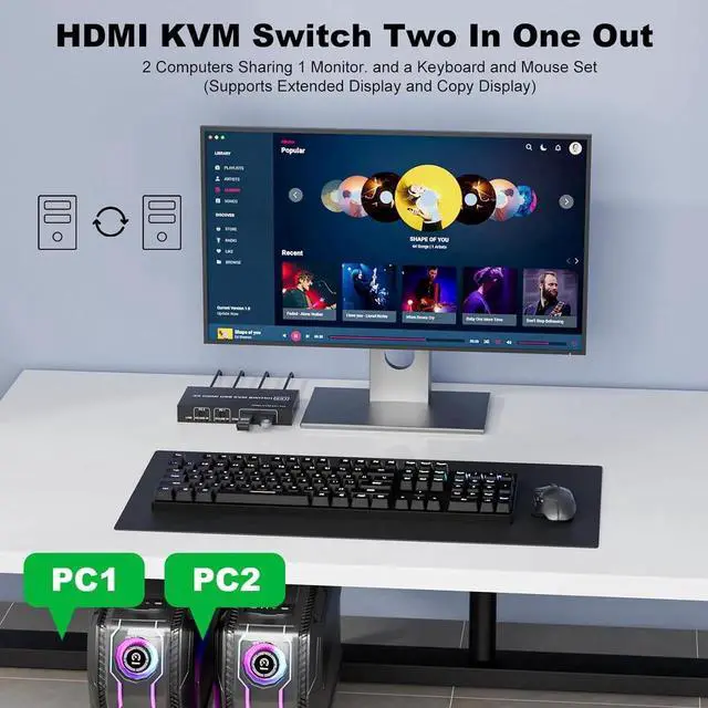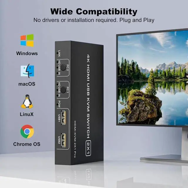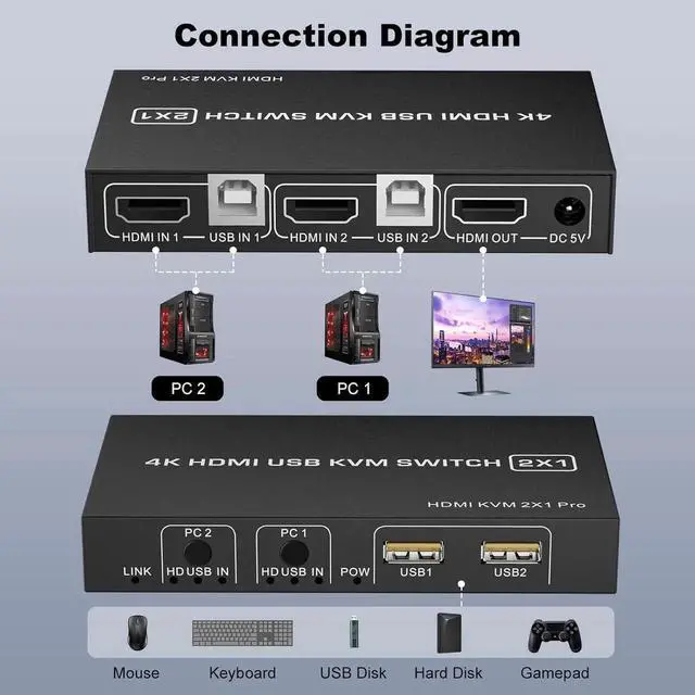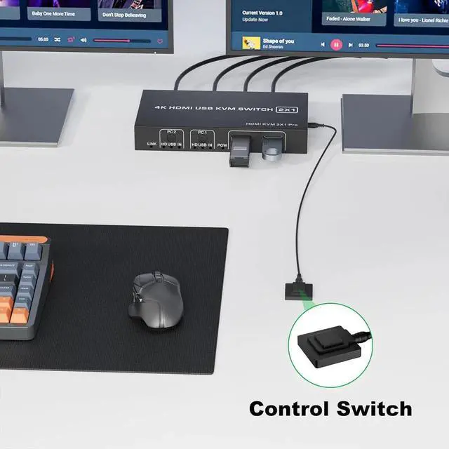 HDMl 2 ports KVM switch two groups of high-definitionvideo source and USB interfaceimplementation free/Synchronize switch, Adaptive EDlD/HDCP, can adapt to a variety ofcomplex application environments. The equipment has excellent image processing and transmissioncapacity, make the output signal is more smooth and steady, is a reliable, high performance andefficient way of HDMI USB switch