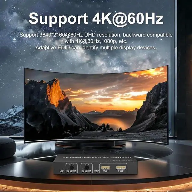 Adaptive EDlD/HDCP, able to adapt to a variety of complex application environment; USB devices that can be connected such as: USB mouse, keyboard, U disk, printer, camera, etc Can be switched using extension cable or host button, which is convenient and quick;