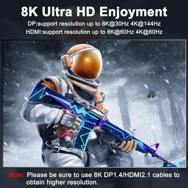 ![Alt view image 4 of 7 - Triple Monitor 2 Displayport + HDMI KVM Switch 8K@60Hz 4K@144Hz, [HDMI + 2 Displayport] KVM Switch for 2 Computers Share 3 Monitors and 4 USB 3.0 Device, with Wired Remote and 5 Cables](https://c1.neweggimages.com/productimage/nb640/C601S26041407SUJNAC.jpg)