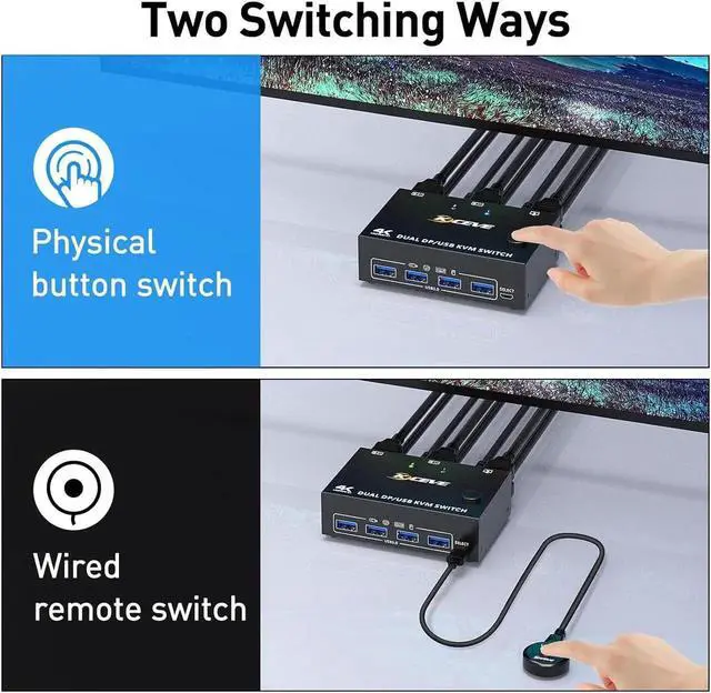 2 computers share 4 USB 3.0 devices and 2 monitors.