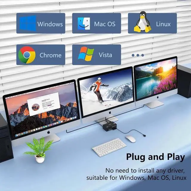 • [8K DisplayPort KVM Switch 3 Monitors] The HDMI + 2 Displayport Triple Monitor KVM Switch [Display port]:support resolution up to 8K@30Hz/4K@144Hz. [HDMI]: support resolution up to 8K@60Hz/4K@120Hz and backward compatible with lower resolution.
