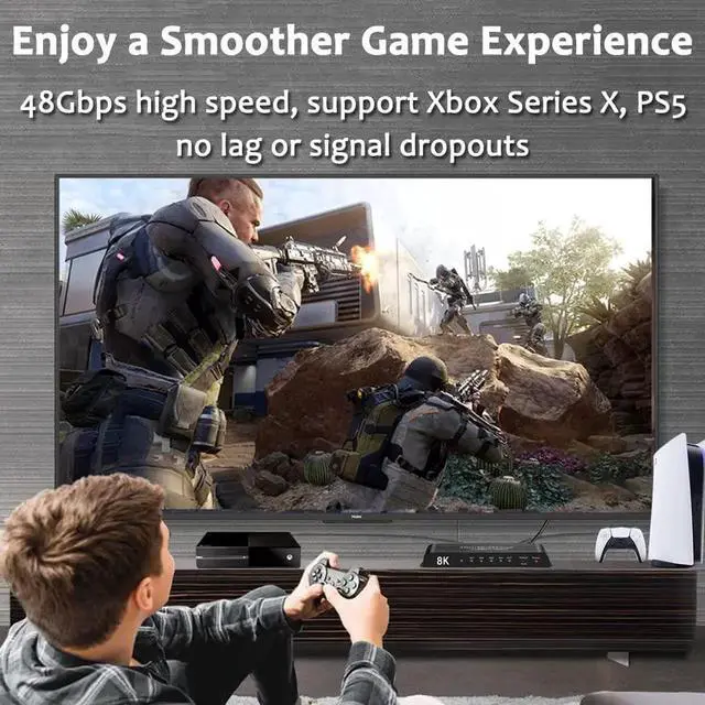 [Broad Compatibility] Widely compatible with most HDMI device such as PS5, Xbox Series X/S, PS4-Pro, Roku Ultra, new Fire TV, Apple TV, UHD Blu-ray player, UHD TV, monitor, projector
