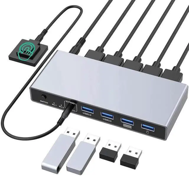 2 Switching Modes: This KVM switch has both push button switching and extended button switching. The extended button makes it easier for you to switch between 2 computers. Even if your dp kvm switch is in a hidden location, you can switch at any time with one click.