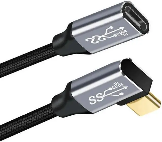 FOR Left Right Angled USB-C USB 3.1 Type C Male to Female Extension Data Cable 10Gbps 100W with Sleeve for Laptop