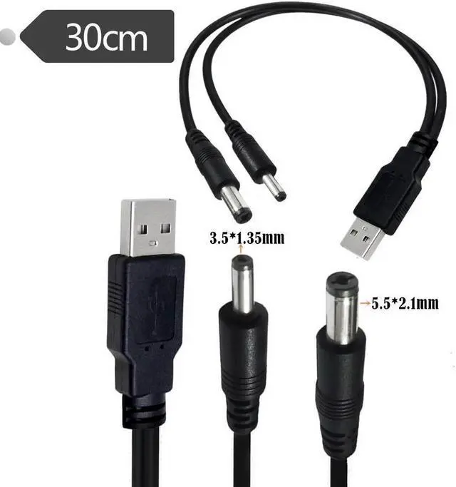FOR Usb Power Cable To Dc 5.5 * 2.1 mm 3.5 * 1.35 mm 5521 5v 2a 3a Charging Cable Splitter Adapter 0 For Router Fan