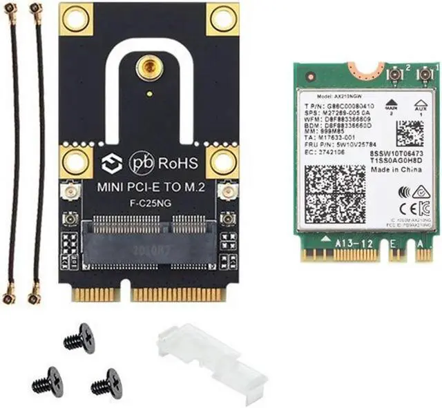 M.2 to Mini PCI-E Adapter with 6E AX210 Wireless Card 5374Mbps 802.11AX 2.4G/5Ghz/6Ghz BT5.2, Mini PCIE AX210