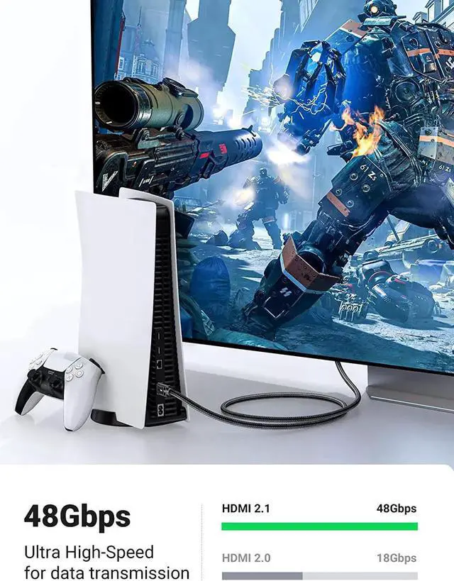 8K 60Hz FUHD: UGREEN hdmi 8k cable supports higher resolution of 8K 60Hz, and compatible with 8K 50Hz, 4K 120Hz, 4K 100Hz, etc.