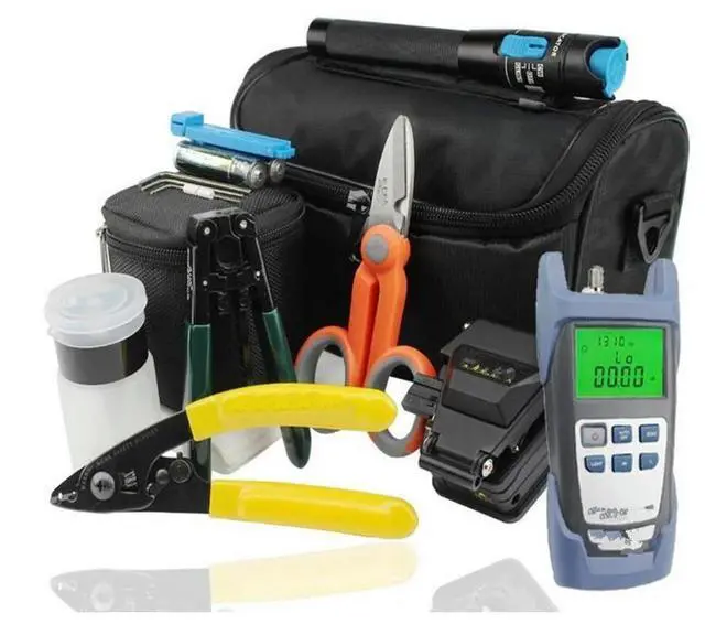FOR 18 In 1 Fiber Optic Splice Tool Kit with Optical Power Meter and 10MW Visual Fault Locator SKL-6C Optical Fiber Cleaver
