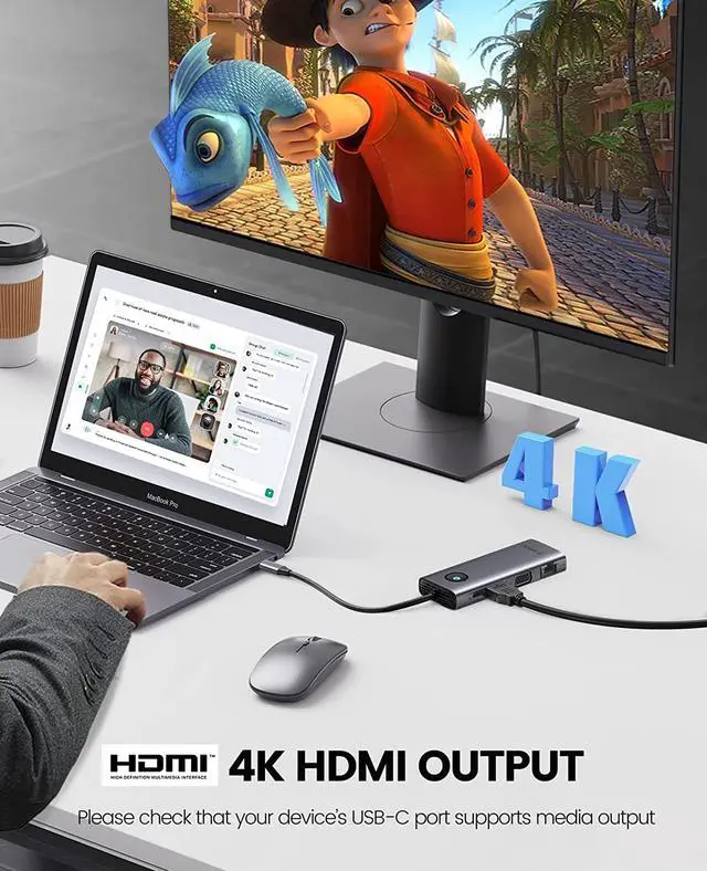ORICO USB C docking station has perfectly combined the function of USB C hub and docking station, it turns a usb c port into 8 ports: an HDMI 2.0 4K@60HZ output, a VGA port, a 100W USB-C Power Delivery port, an RJ45/Ethernet input, 2 super speed USB-A 3.0 Ports, a 5Gbps Type-C port, 1*USB2.0 Port for Wireless Mouse or keyboard.
