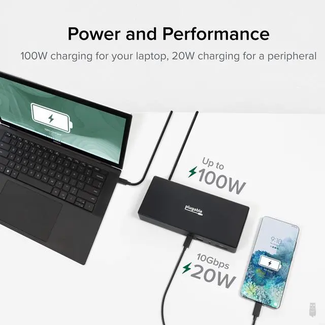 Power your laptop with 100W charging. Convenient USB-C port with 20W for phone or accessories.