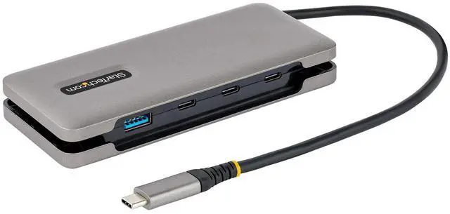 This 4-Port USB-C Hub expands the connectivity of a USB-C laptop. This hub features four USB 3.2 Gen 2 (10Gbps) enabled ports, three USB-C and one USB-A, that support high-bandwidth USB peripherals. Connect the attached USB-C cable to a USB Type-C™ or Thunderbolt™ 3/4 port, located on the host computer, to enable the quick connection of up to 4 peripherals.