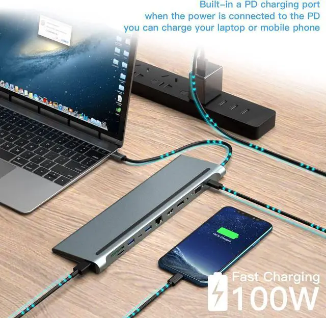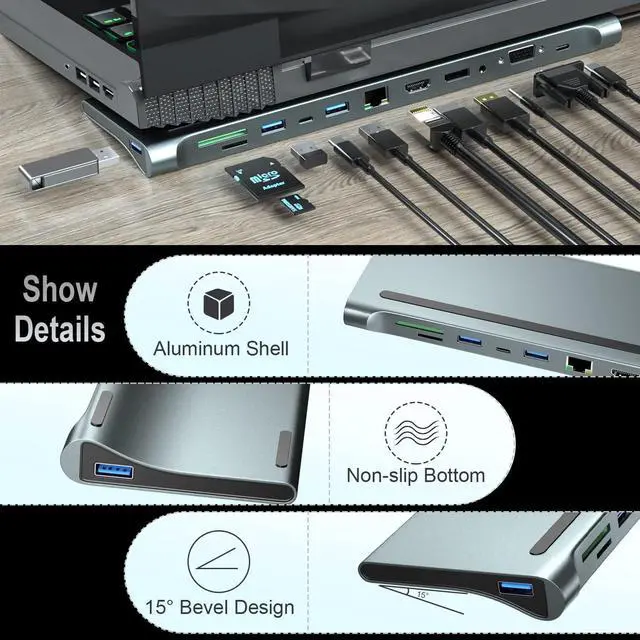 USB C Docking Station , 12 in 1 USB C Hub ,Triple Monitor Type C to DP + HDMI + VGA Adapter, Laptop Docking Station Extended Display Multiport USB 3.0 SD/TF Audio for Dell, Surface, HP, Lenovo Laptops
