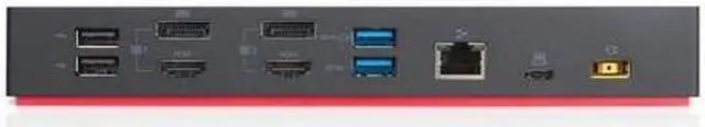 Ports: 1x Gigabit Ethernet; 2x Display Port; 2x HDMI Port; 1x Stereo/Mic Combo Audio Port. Enterprise-class universal docking. Supports ThinkPad RapidCharge. Works with older Lenovo and non-Lenovo laptops. Can charge mobile devices with 15W and 10.5W from USB-C port and USB 3.0 always power-on port respectively.