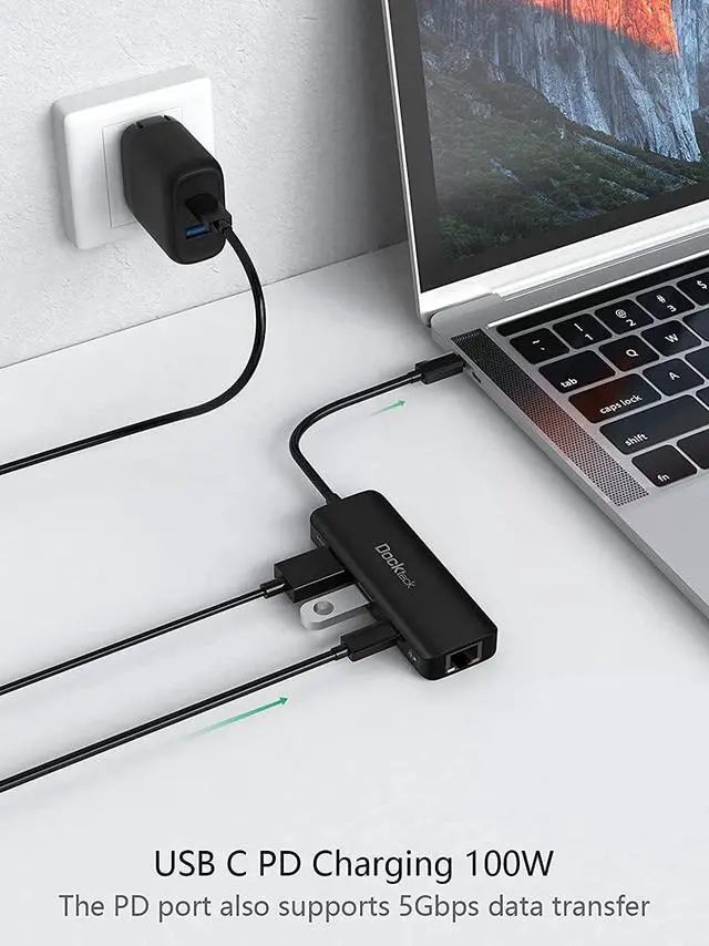 Up To 100W Super-Fast Charging: The USB Type C hub provides 1 Type-C female port - support 100W (20V/5A) power in (max 92.5W will be passed to the host), no worry about power outage. Also supports data transfer up to 5Gbps when connecting to a Type C device