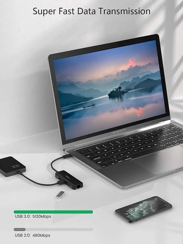 Super-Fast Data Transfer & Stable Wired Connection: Up to 5Gbps data speed of USB3.0 port enables you to transfer files, music and movie library in seconds. 1000Mbps USB C ethernet ensures faster and more stable wired network with RJ45 LAN, safer than wireless connection