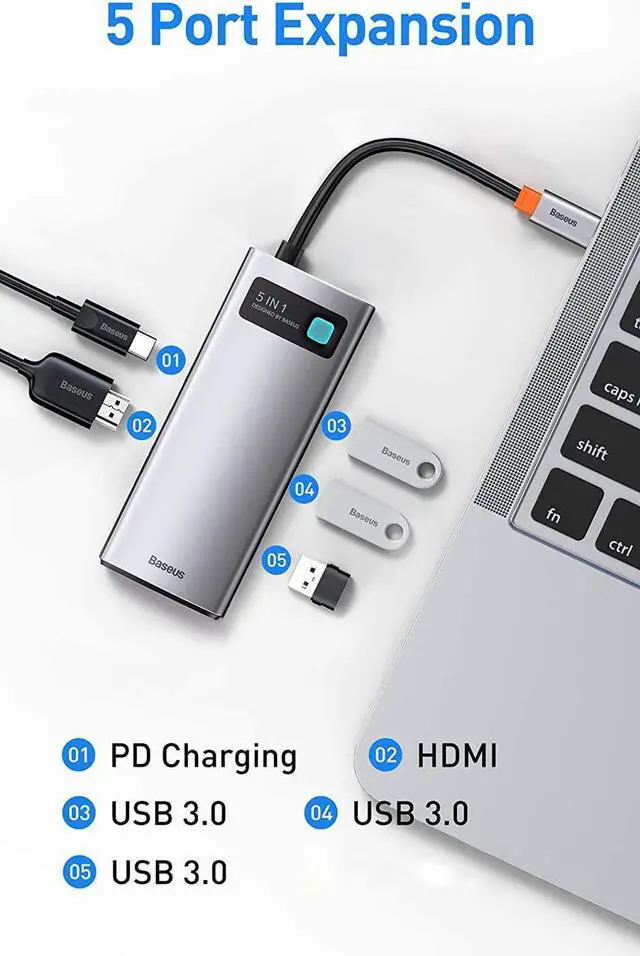 5-in-1 USB HubPlug and play. With a single interface to connect to a variety of devices, it turns a single usb c port into 5 ports for data transfer, display expansion and charging. As a new content of powerful usb c docking station with PD charging port, 4K HDMI port, 3 USB 3.0 ports.