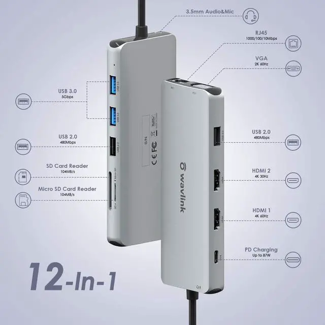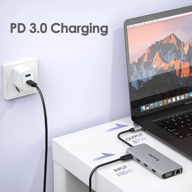 Fast Charge & Data Transfer - The USB-C PD charging port supports pass-through charging of up to 60W, quickly charges iPad Pro while using the other ports, and can connect USB C flash drive for data transfer. USB 3.0 supports transfer speeds up to 5Gbps, fast enough to transfer and share images, files, and videos in seconds.