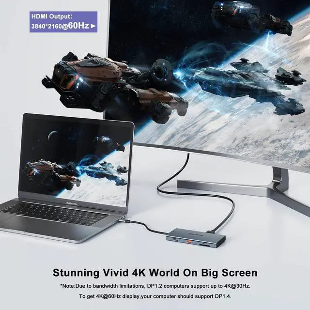 4K@60Hz HDMI Display: Easily mirror or extend your device's screen to external HDMI-enabled monitor, and then just enjoy an excellent 4K@60Hz UHD display (your PC should support DP1.4). Say ultra-vivid film and gaming, business meetings, presentations, or video/audio/picture editing, etc. (*Please make sure the type-c port of the host support video ouput).