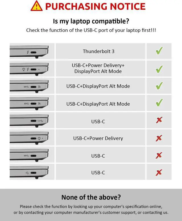 International Applicable USB C Hub: This tiny but mighty laptop?docking station can?be?widely?applied to current Type-C laptops / tablets / smartphones that support Display Alt mode and power delivery. For instance MacBook / MacBook Pro 2016 or later, MacBook Air 2018 or later, Google Chromebook Pixel, Huawei MateBook (Pro), Dell XPS / Latitude series, Surface Book2 / Go2 / Pro7 or later, HP Spectre 13, HP EliteBook 840 G5-G8. Huawei new series smart phones and Samsung Note 8/S9 or later, etc.