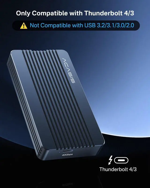 DSL6340 CERTIFIED CHIP: acasis m.2 enclosure controlled by chip, more stable and reliable, better heat dissipation, only compatible with thunderbolt3/4, USB 4NoteSSD NOT INCLUDE