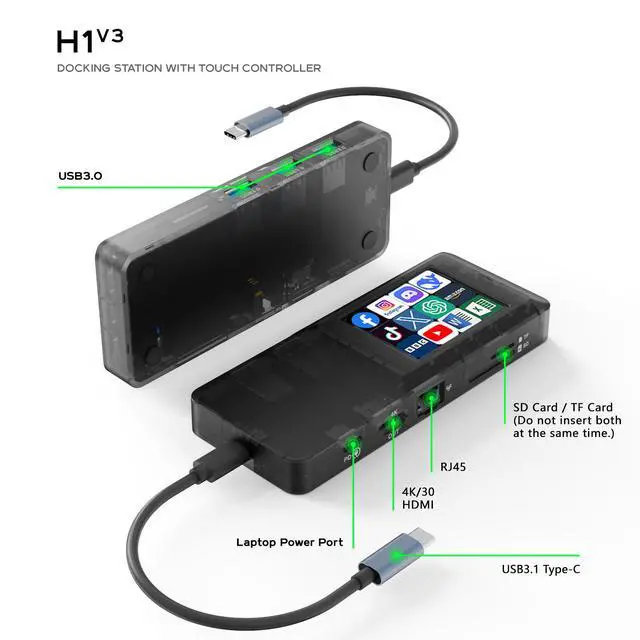 H1 8-in-1 Type-C Dock with 2.4" Touch Screen, Adds Touch Bar Function to Laptops & Non-Touch Bar MacBooks