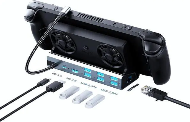 Warm note: The added fan has separate switches, while equipped with 24 color random changes, widening the bottom groove to allow the console and steam deck dock The gap is larger, and the fan heat is better.