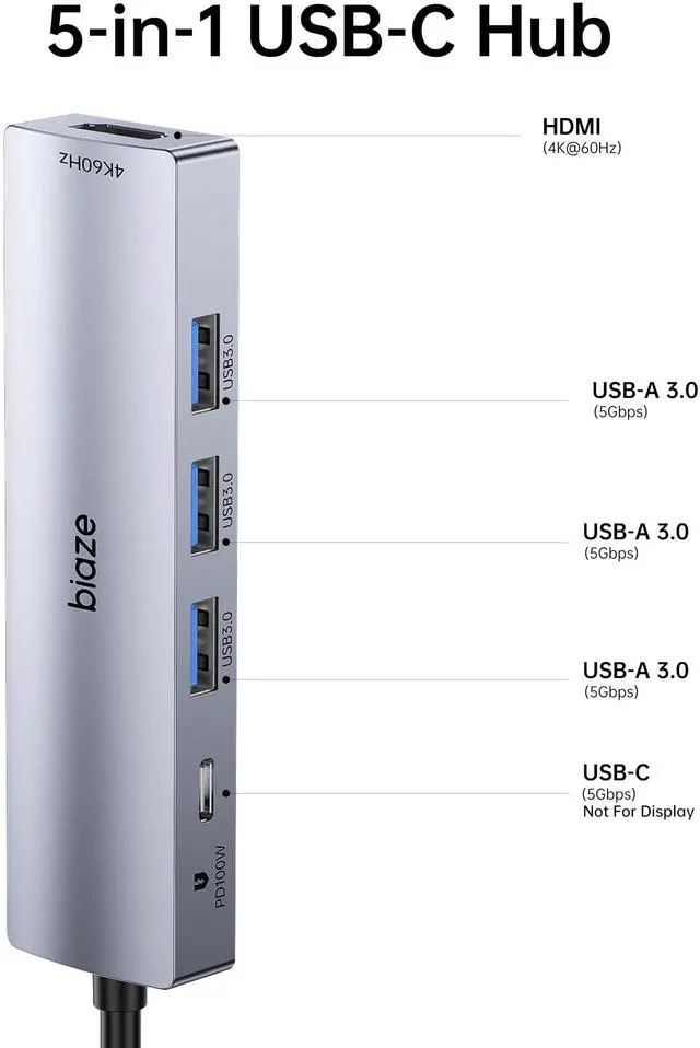 5-in-1 Dock for MacBook - Expand Your Ports! Supports 4K60Hz HDMI, 100W PD Fast Charging, 3 USB 3.0 Ports, Hub for Laptop. Compatible MacBook Air/Pro M4/M3 and iPhone 15/16 Series.