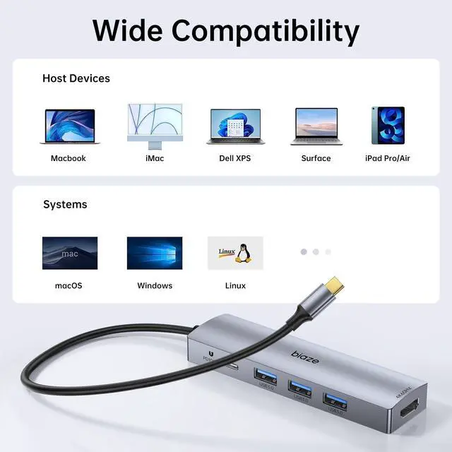 100W PD Fast Charging & Efficient Expansion in One This Thunderbolt 4 dock delivers continuous power and comprehensive connectivity. With 100W Power Delivery (PD) pass-through charging, your MacBook Pro or MacBook Air stays fully charged while you work. Simultaneously, three USB 3.0 ports (5Gbps) instantly transform your device into a complete workstation, seamlessly connecting flash drives, external hard drives, keyboards, and miceall with effortless integration. This USB-C docking station is the ultimate adapter for Mac users.