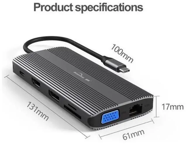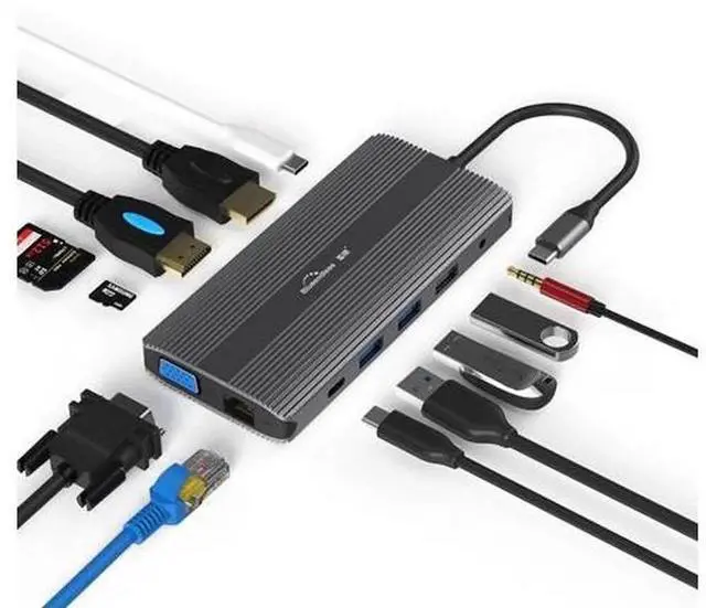 • Blueendless USB C Hub HDMI/DP/VGA Ethernet 3 USB Ports PD SD/TF 12 in 1 Docking Station for Type-C Laptops Smart Phone