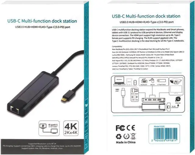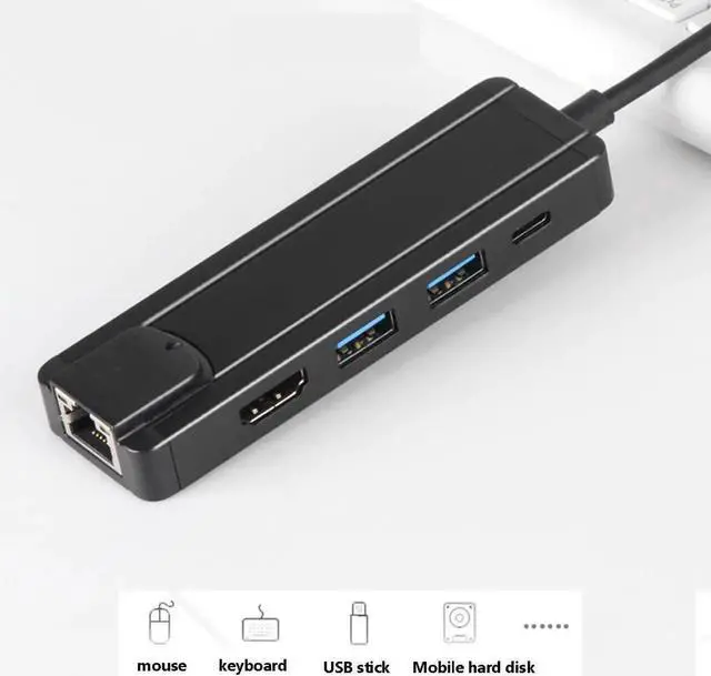 DescriptionCan immediately add a network connection to the computer via USB for fast and secure file transfer.Match your laptop and more: The stylish, modern and durable aluminum design of the USB C hub complements your laptop, desktop or other streaming device.Replacement for MacBook / MacBook Pro 2018 15 inch / 2016/2017 and other devices with USB-C port. transfer: 2 x USB 3.0 ports support transfer rates up to 5Gbps.Supports USB keyboard / mouse, USB flash drives, and even high power consumption extended USB hard drives.Specification:Name: 5 in 1 HUB.Performance characteristics using VL101 + VL813 + PS176 + RTL8153 chip.The highest resolution is 3840X2160P / 30HZ (requires the support of the display host), also supports 1080p / 23.98 / 24/50 / 59.94 / 60HZ, 1080i / 50 / 59.94 / 60HZ, 720p / 50 / 59.94 / 60HZ and so on.Support HDCP2.2.USB3.0A / F supports a maximum current of 0.9A and a maximum rate of 5Gbps.Backward compatible with USB2.0 / 1.1.Compliant with USB-C interface specifications.Support SD / TF card storage function.Built-in conversion chip, plug and play.Working temperature: 0 ~ 70 .Operating humidity: 10% to 85% RH (non-condensing).Storage temperature: -10 ~ 70 11 Storage humidity: 5% to 90% RH (non-condensing).Network card supports up to 1000M and 100M and 10MColor: black.Note:There might be a t color distortions due to different computer resolutions.There might be size errors due to different computer resolutions.Package include:1 * 5 in 1 HUB.