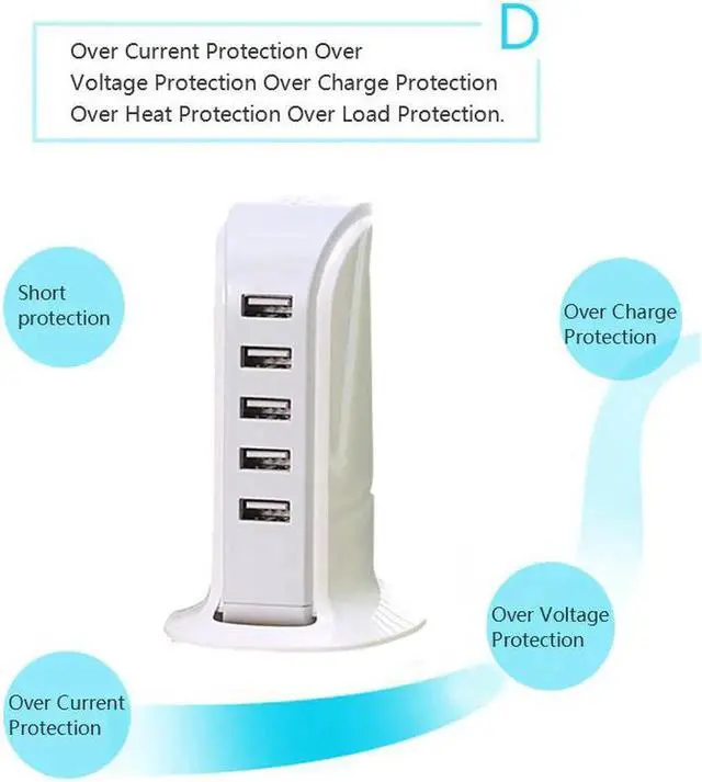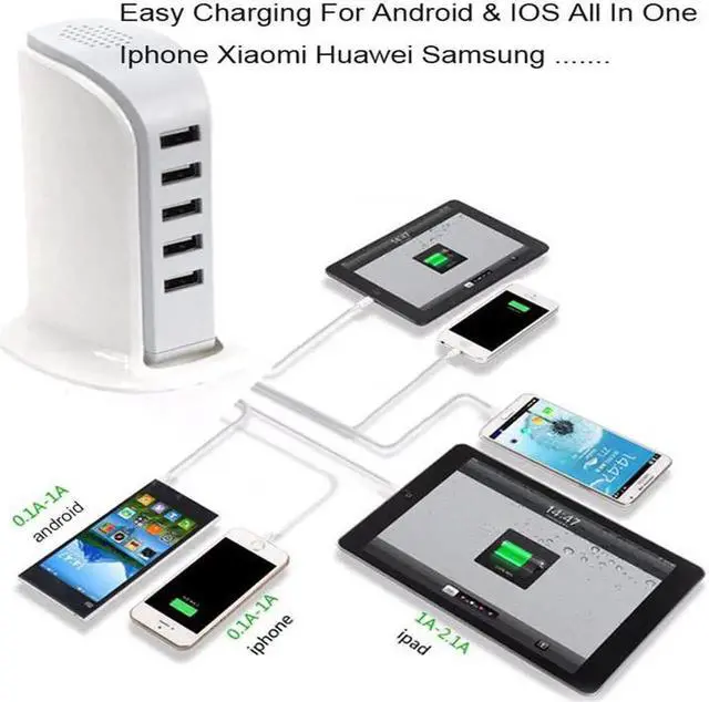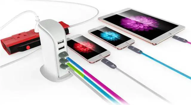 5 USB ports, 1 charger charge 5 devices simultaneously.