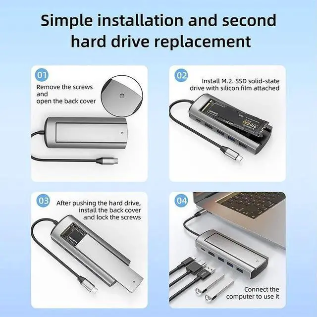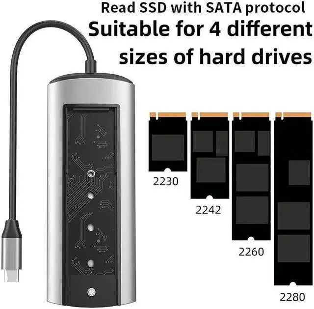 USB C dock station: This docking station offers 6 different ports to connect your devices, including M. 2 SSD port and a USB C port. Can read sata protocol SSD.