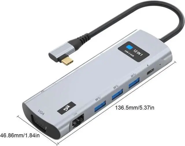 Versatile Connectivity: This hub features USB 3.0x3, PD 3.0x1, Type-Cx1, SD, TF, DisplayPortx1, HDx1, VGAx1, 3.5Audiox1, and RJ45x1 interfaces, meeting Type C interface specifications for easy use.
